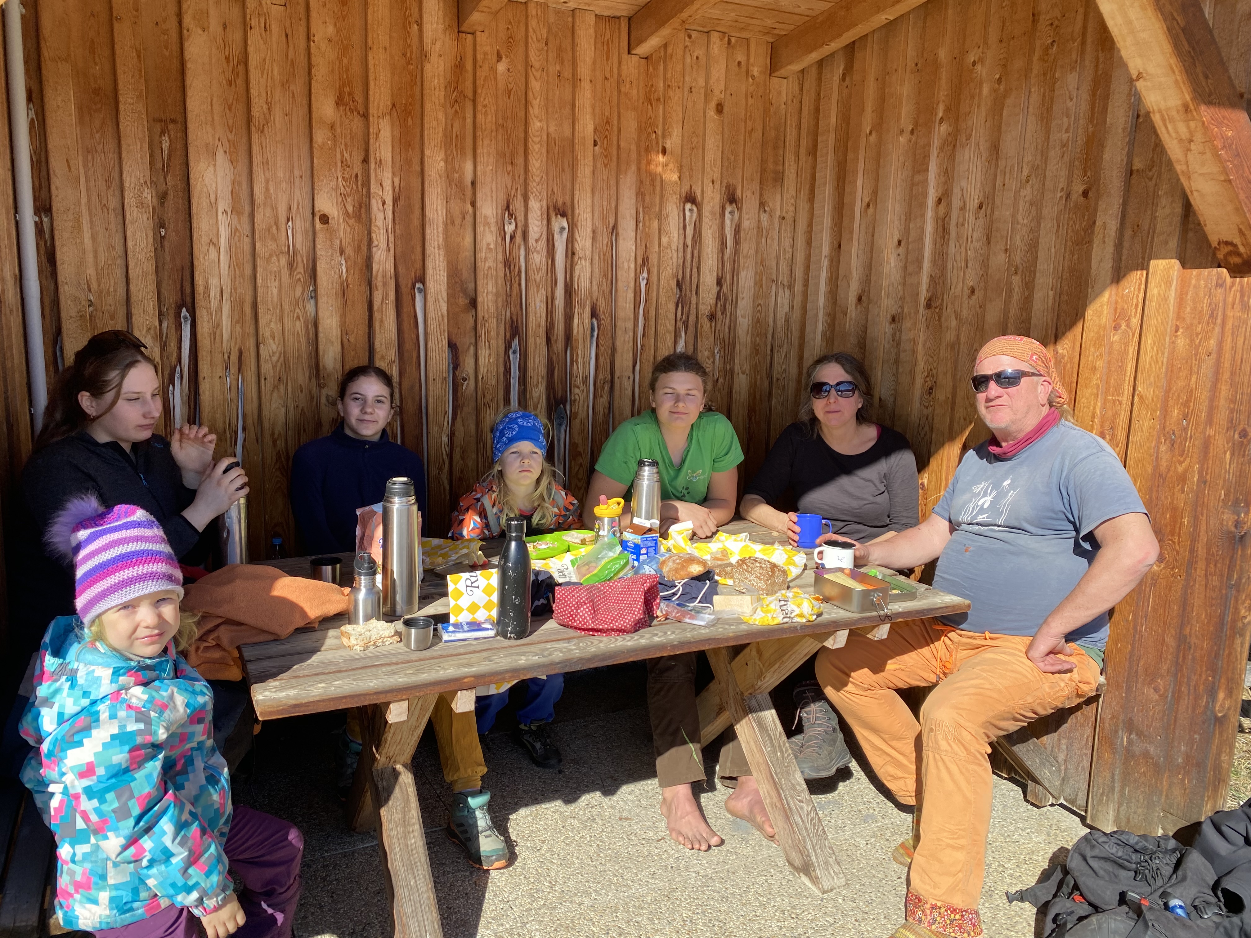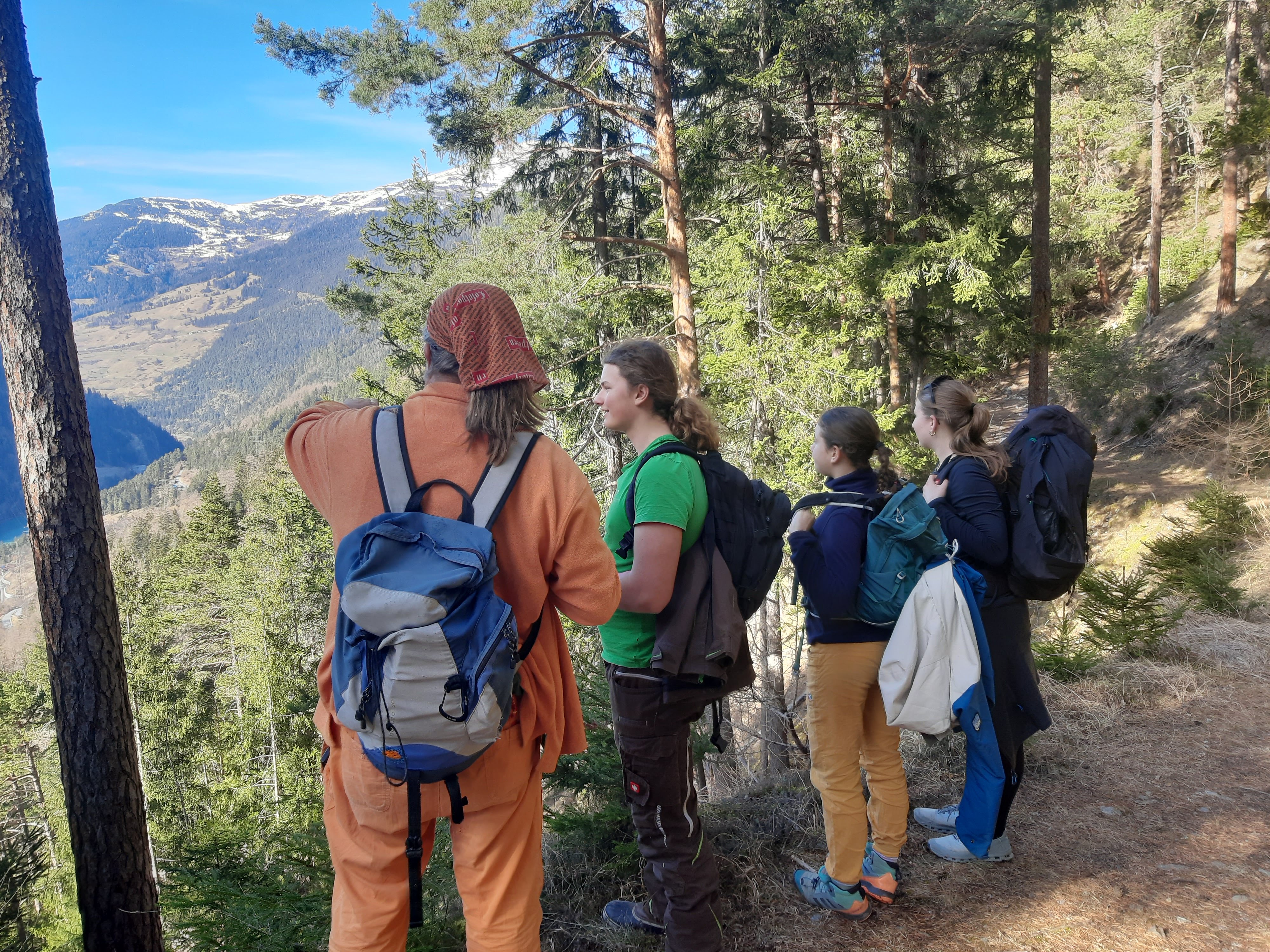 Eine Gruppe wanderte von Kauns rauf Richtung Schnadiger Weiher, eine zweite Gruppe mit jüngeren Kindern wanderte von Kaunerberg zur St. Martins Kapelle. Dort trafen sich beide Gruppen zum jausnen. Die Älteren erzählten den Jüngeren über den Weiher, die Landschaftsentwicklung und wie die Kaunertaler Bevölkerung nach dem 2. Weltkrieg die Wasserversorgung verbessern konnten. Der Schnadigen Weiher ist ein kleiner, künstlich angelegter Bergsee und liegt ganz versteckt und sehr schön in einem kleinen Waldstück am Weiler Schnadigen.