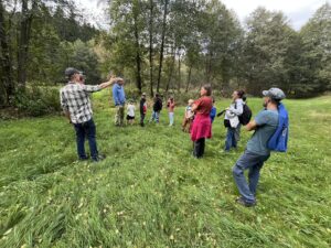 FOTO: Severin Zimmerhackl (l) von der önj Haslach führte die Helfer durch die angrenzende Otterinsel in Schindlau, Gemeinde Ulrichsberg.